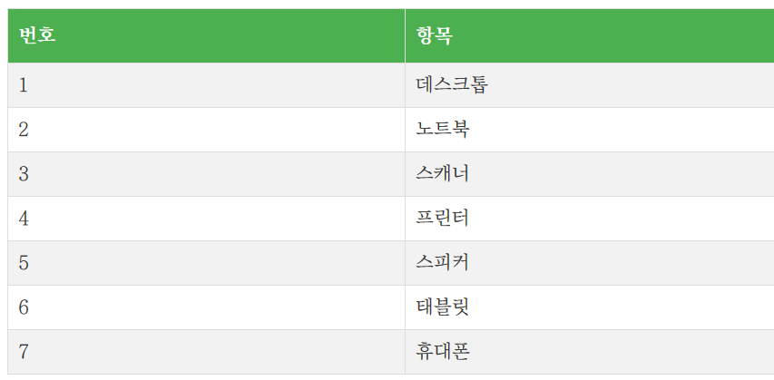 $item = array("데스크톱", "노트북", "스캐너", "프린터", "스피커", "태블릿", "휴대폰");